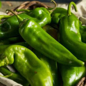 These chile peppers are available in various heat levels, ranging from mild to their hottest variety. Their thick flesh makes peeling easy after roasting, and they’re harvested from July to August.