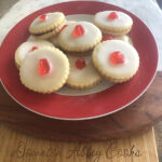 Spread a thin layer of icing on top of each cookie, top with a piece of glacée cherry and set on a rack to dry. Let the cookies dry for about 3 hours before storing in an airtight container.