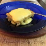 Bake in the oven for 40-50 minutes, until the sponge mixture is golden and firm to the touch in the centre. Spring with superfine sugar and serve with custard or cream. (I prefer non fat plain yoghurt to keep the fat count down.)